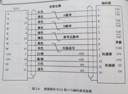 ??如圖2-4所示,SIEMENS 81OT/M系統(tǒng)也是通過測(cè)量模塊接收位置反饋信號(hào)的,一個(gè)測(cè)量模塊塊可以連接三個(gè)軸的位置反饋。測(cè)量模塊上面三個(gè)X111. X121和X131接口是連接位位置反饋的.圖2-6為測(cè)量模塊接口X131與編碼器的連接圖。另兩個(gè)接口X111和X121與X131是相同的。使用時(shí)要注意這三個(gè)接口的順序。